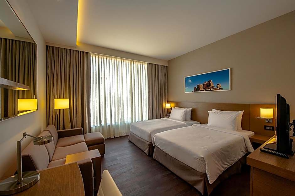 Offering free toiletries, this twin room includes a private bathroom with a shower, a hairdryer and slippers. The air-conditioned twin room offers a flat-screen TV with cable channels, a mini-bar, a tea and coffee maker, a seating area as well as garden views. The unit offers 2 beds.